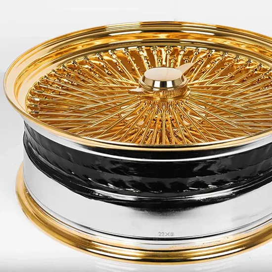 Luxury Wholesale Golden Spinner Wire Chrome Straight/Cross Lace Spoke Alloy Car Rims 13X7 14X6 14X7 17X9 13 14 15 16 17 18 19 20 22inch Forged Wheels