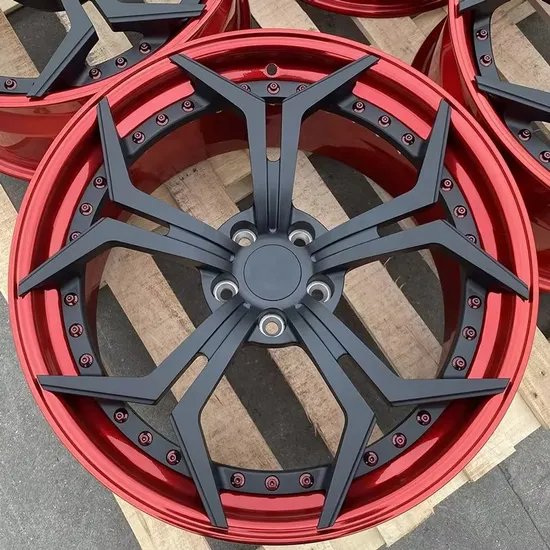 Two-Piece Forged Black Painting Spokes and Red Lip 5 Holes Car Wheel